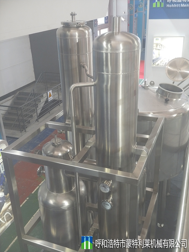 本設備主要由降膜加熱器 、分離室、冷凝器 、水環(huán)式真空泵、雙機械密封衛(wèi)生泵、連接管道及電氣控制系統(tǒng)等組成。