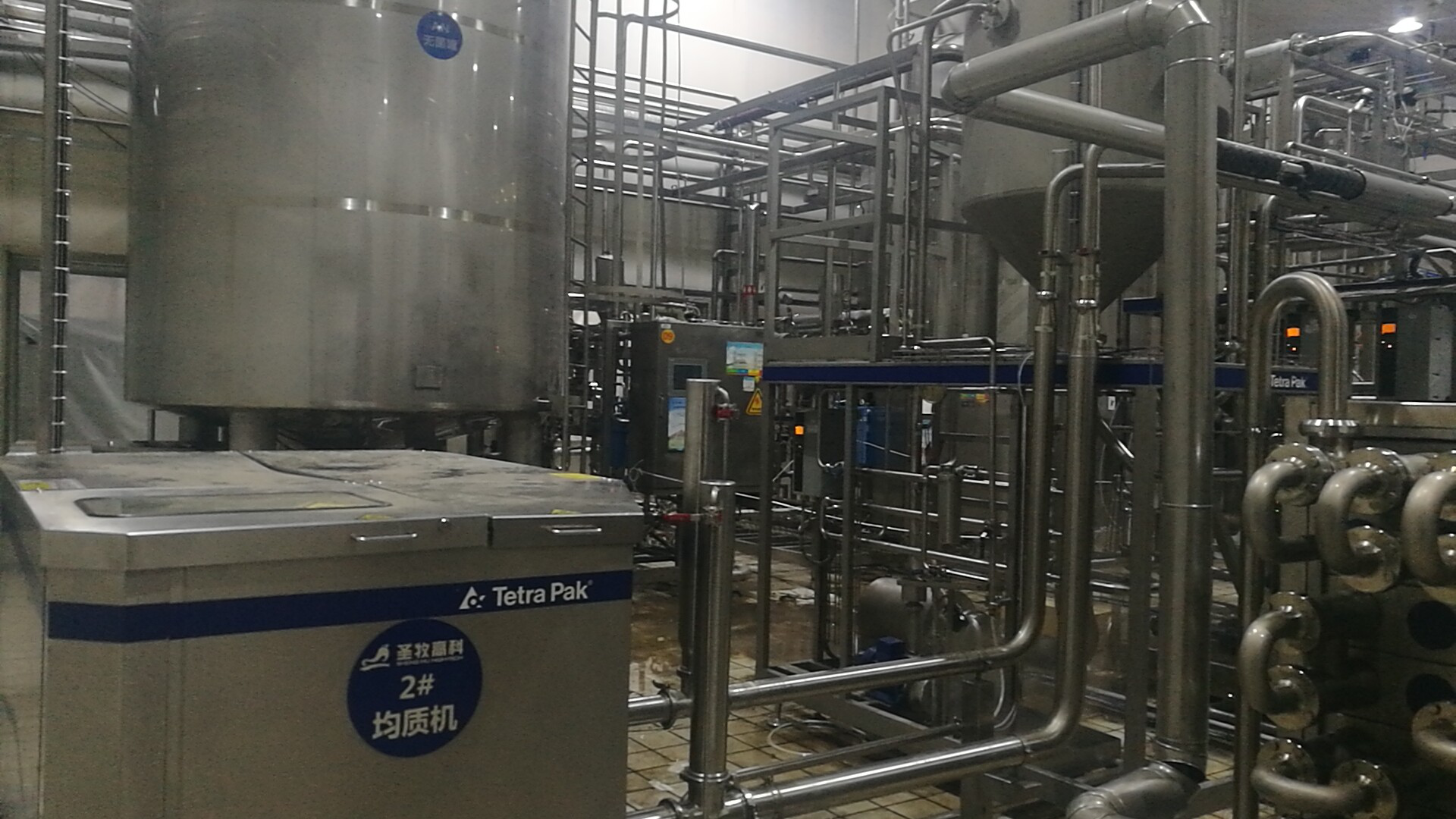 鼎佳峰UHT內(nèi)部管路連接完成,主電纜和均質(zhì)機(jī)電纜安裝完成,排放完成,信號線連接完成,能源管路除濃酸堿其余全部連接完成,無菌管線等管件到達(dá)